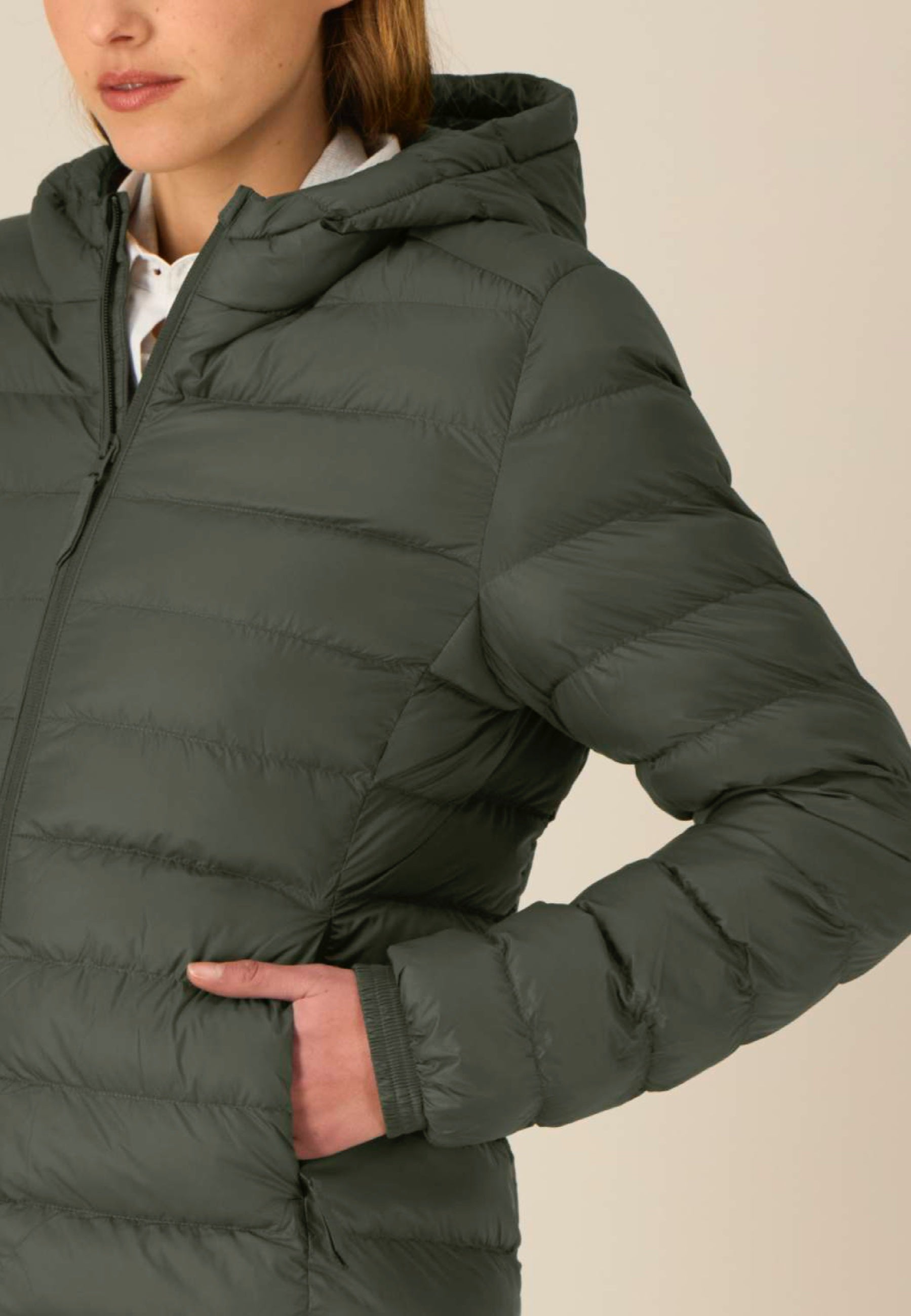 Unsere VOYAGER Women ist eine leichte, wattierte Jacke für kühle Tage – sportlich, schlicht und angenehm zu tragen. Das recycelte Polyester ist dauerhaft wasserabweisend (DWR-beschichtet) und ganz ohne Fluorstoffe – Wasser perlt einfach ab, während das Material atmungsaktiv bleibt. Die verstellbare Kapuze und der individuell anpassbare Saum sorgen für eine bequeme Passform und guten Schutz bei Wind und Nässe.